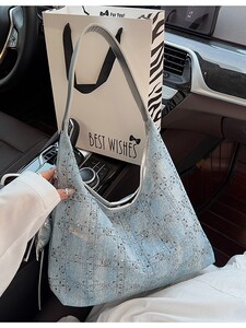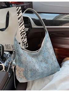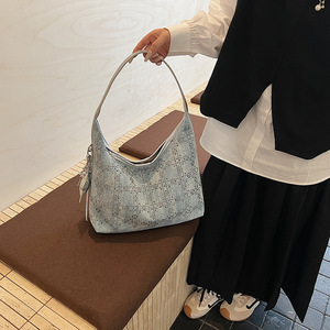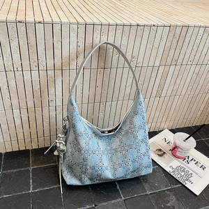 秋季单肩包高级感亮钻手拎小包包女新款潮时尚牛仔饺子包夏季质感