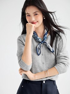 伊*L女装2025秋季新品羊毛百搭针织开衫镂空上衣女1G8932141