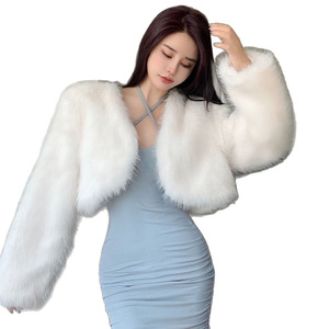 仿皮草短款外套名媛秋冬气质新款小香风仿皮草外套宽松短款