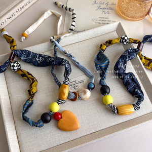 时尚设计趣味拼接布艺项链文艺小众手工时髦丝巾锁骨链可调节颈链