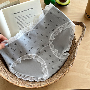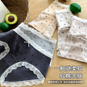 波尔卡无痕蕾丝边女士内裤纯欲全棉抗菌裆少女生夏薄款式三角内裤