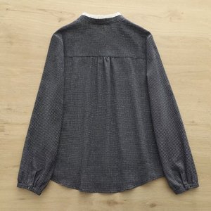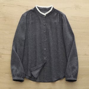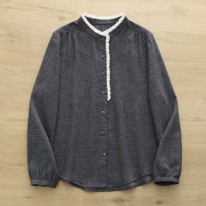 2025秋季新款立领花边磨毛 格子开衫女士长袖衬衫批发