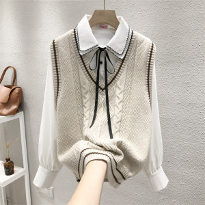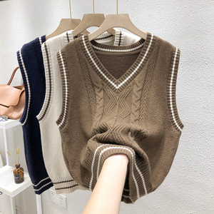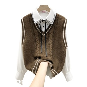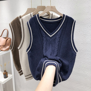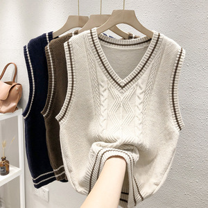 2025秋季新款拼色麻花学院风休闲外搭毛衣背心女叠穿针织马甲女