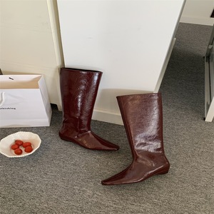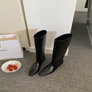 秋冬新款显腿直骑士靴英伦风时尚百搭方头低跟不过膝高筒长靴