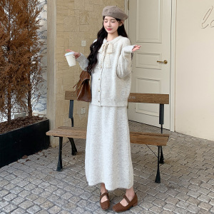 2025秋冬新款气质设计感系带显瘦开衫毛衣半身裙辣妈孕外穿妇套装