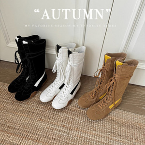 2025年新款拼色女鞋休闲百搭高筒靴系带高丝光磨砂皮德训靴马丁靴