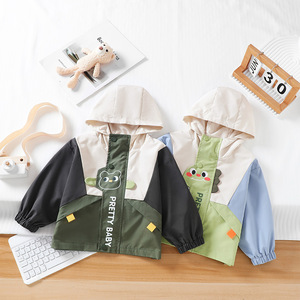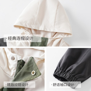 秋装户外男童夹克秋季女童儿童冲锋衣连帽宝宝撞色外套