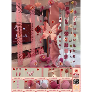 新婚房客厅窗帘长条喜全套布置男女方结婚礼创意拉花氛围感套装饰