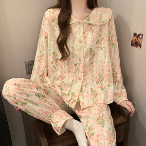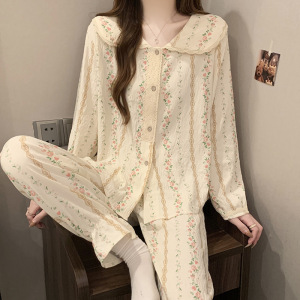 云朵棉睡衣女2025春秋季新款韩版公主风碎花薄款长袖家居服两件套