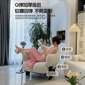 单人沙发椅法式奶油风客厅阳台休闲椅懒人设计师沙发考拉靠背单椅