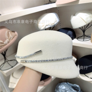 新款法式毛呢毡帽女秋冬羊毛八角帽女士冬天英伦复古百搭帽子批发