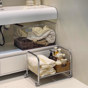 中古风脏衣篮可移动脏衣筐小推车大容量脏衣篓卫生间洗衣篮置物架