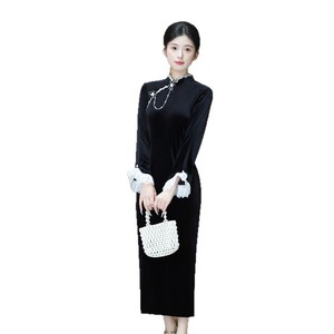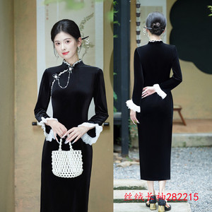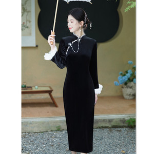 艾旗绣时尚改良新中式丝绒长袖旗袍2025秋新款年轻女士感旗袍