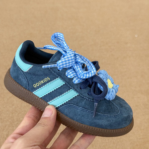 QQO童鞋 2025秋季新款儿童时尚花朵板鞋男女童软底头层绒皮德训鞋