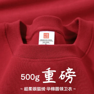 新年红500g重磅加绒卫衣男银狐绒圆领宽松纯色长袖秋冬打底衫女衣