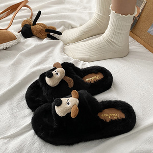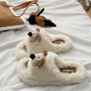 跨境可爱毛毛拖鞋女2025新款外穿秋冬厚底保暖防滑居家一字棉拖鞋