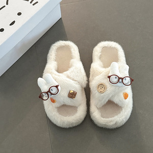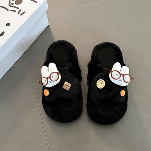 秋冬季可爱卡通米菲兔交叉带毛毛鞋时尚棉拖鞋保暖休闲女生棉拖鞋