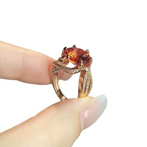 跨境热销大克拉红锆石戒指女轻奢大气满镶白钻彩宝开口可调节指环