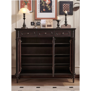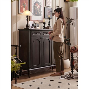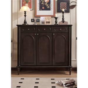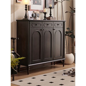 法式中古风黑色鞋柜美式复古玄关柜入户玄关柜隔断餐边柜