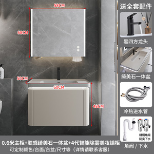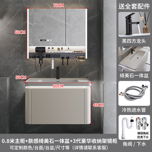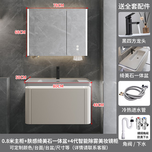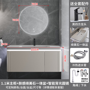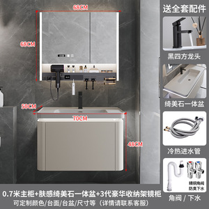 网红绮美石肤感一体盆浴室柜组合简约卫生间洗漱台洗手洗脸盆卫浴