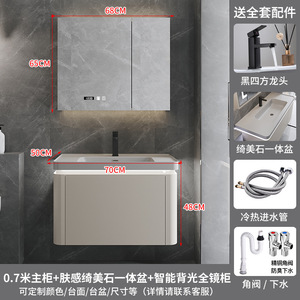 0.7米/一体奇美石/5代圆角橡木镜柜/有背板+镜面灯