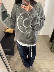 高版本Ac家25年秋冬新款美式复古破洞字母印花圆领卫衣百搭情侣款