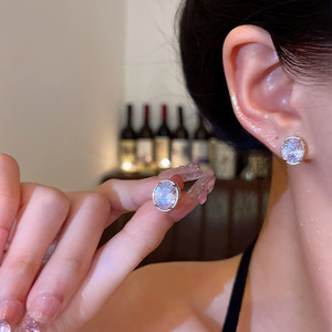 椭圆微镶锆石耳钉女轻奢小众简约大气耳环网红同款高级感耳饰批发