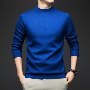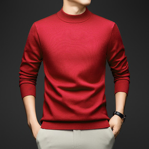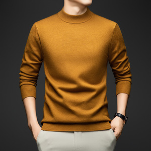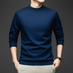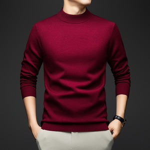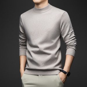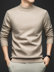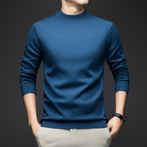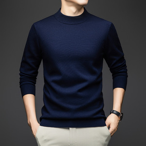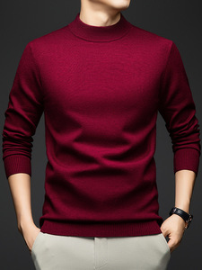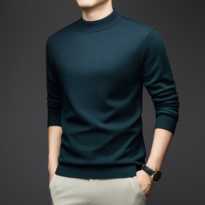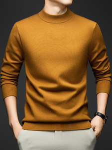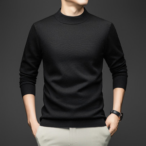 跨境半高领毛衫男士加厚保暖毛衣秋冬新款休闲纯色内搭打底针织衫