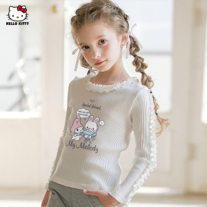 HelloKitty凯蒂猫美乐蒂联名女童秋季打底衫2025款法式田园风上衣