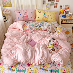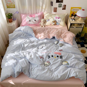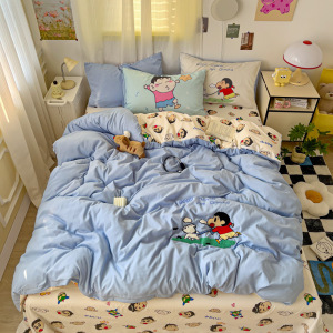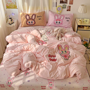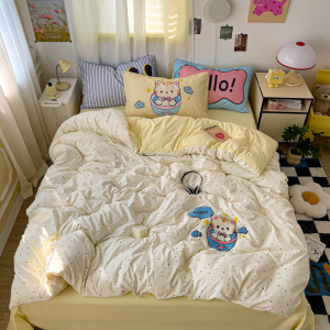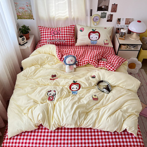 ins风毛巾绣四件套高克重亲肤云朵棉单被套学生宿舍三件套床套件