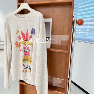 彩纱小丑花园印花长袖T恤女秋季趣味设计感宽松减龄休闲上衣体恤