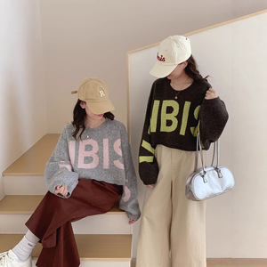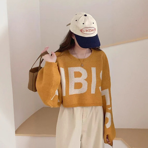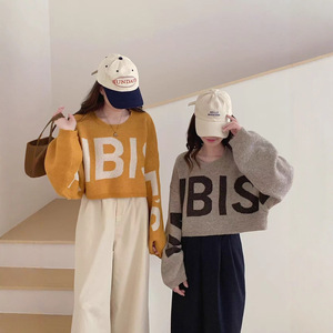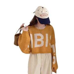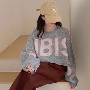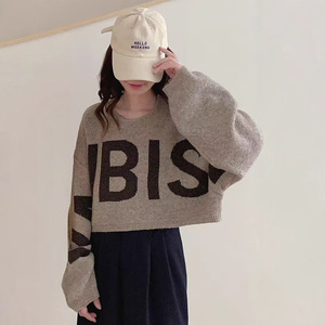 韩国圆领撞色字母针织衫女25秋冬新款休闲风宽松显瘦百搭短款上衣