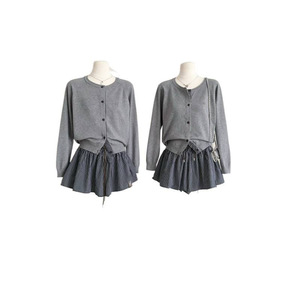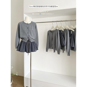 塞纳 2025秋季新款松弛感格子拼接圆领针织插肩袖开衫+格纹半裙