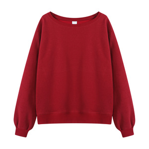350克秋冬新款百搭纯色简约高级感一字肩卫衣露肩气质宽松印花