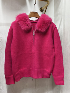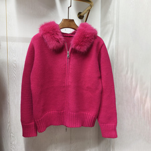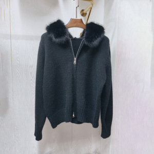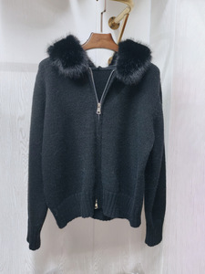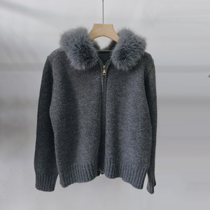 仿狐狸毛毛领宽松连帽针织开衫毛衣外套女秋季可拆卸慵懒韩系上衣