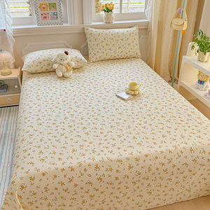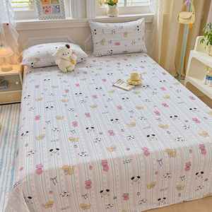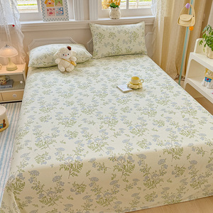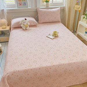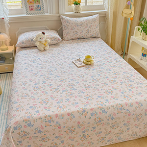 新款小清新全棉纯棉印花单床单枕套床单三件套学生宿舍单人床品居