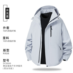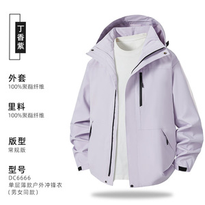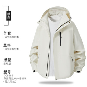 单层薄款连帽外套户外冲锋衣企业工作服团体服风衣工装定制印logo