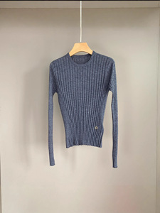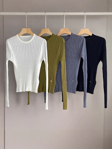 南油篙品2025秋冬新款LP圆领坑条长袖羊毛针织衫时尚百搭休闲毛衣