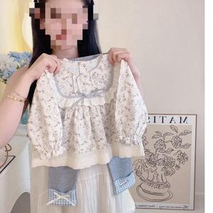 女童套装2025秋季新款韩版洋气碎花衬衫女宝宝公主风蝴蝶结打底裤