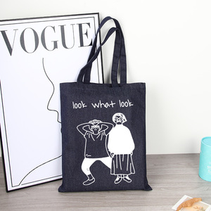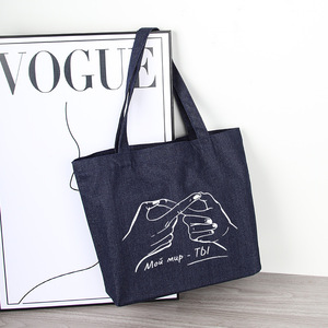 牛仔布手提袋定制印logo广告空白托特包单肩复古牛仔帆布袋定做