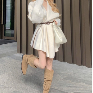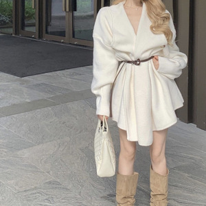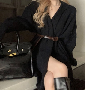 复古白色女秋冬新款宽松慵懒风系带针织开衫外套外穿