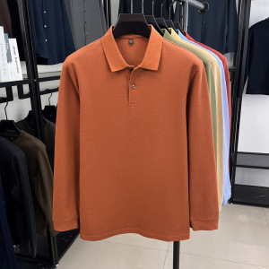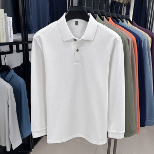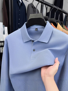 直播跨境长袖棉tPOLO衫2025秋季新款中青年纯色休闲百搭商务t恤男