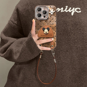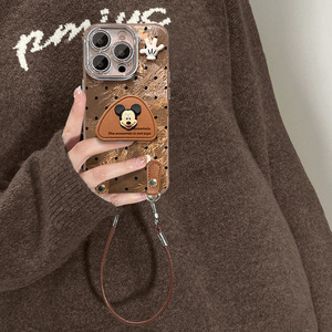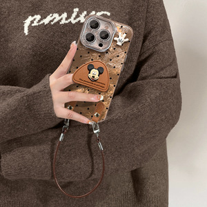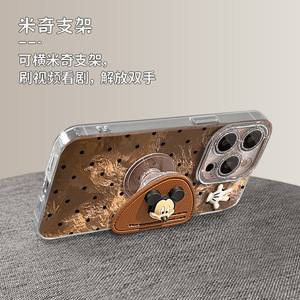 米奇支架挂绳适用iphone16promax手机壳苹果13复古15公仔14冰川纹