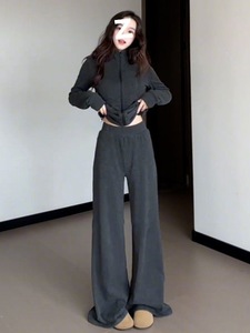 韩系休闲运动服套装女春秋新款韩版显瘦卫衣时尚阔腿裤两件套女装