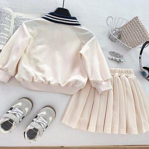 女童百褶裙套装秋季2025新款时尚小女孩洋气字母绣花卫衣两件套潮