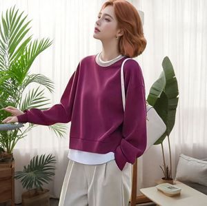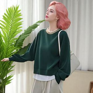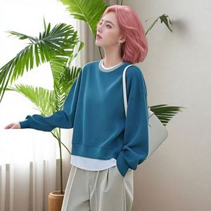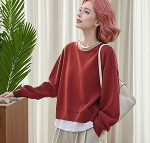 跨境2025新款优雅风圆领假两件设计感长袖卫衣秋冬季气质上衣外贸