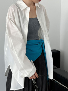 鹿西 韩系简约百搭翻领衬衫女早秋新款时髦慵懒长袖上衣8523