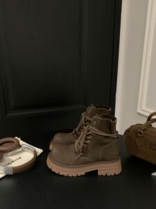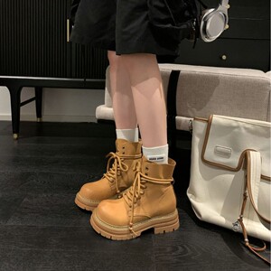 全牛皮马丁靴休闲短靴2025秋冬新款欧版百搭羊皮圆头厚底烟筒靴潮