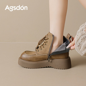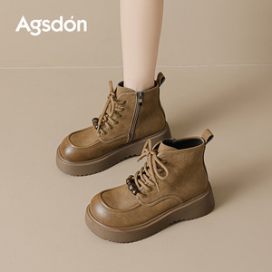 奥古狮登厚底马丁靴女鞋2025新款秋冬时装西部英伦复古美拉德短靴