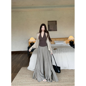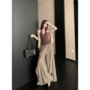 初秋慵懒日系中性气质复古港风穿搭开衫背心高级感休闲长裤套装女